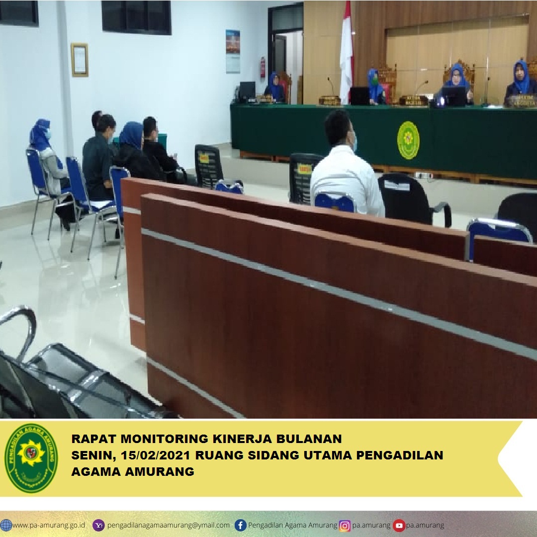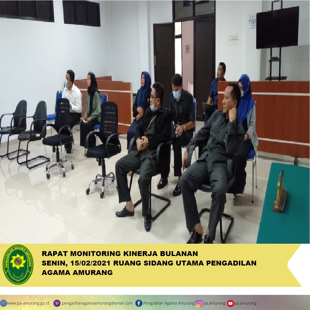Pengadilan Agama Pengadilan Agama Amurang melaksanakan Rapat Evaluasi Bulanan (15/2) di Ruang Sidang Utama Pengadilan Agama Amurang yang dipimpin langsung oleh Ketua Pengadilan Agama Ibu Nur Afni Saimima, dan diikuti oleh Wakil Ketua, Hakim, Pejabat Struktural dan Fungsional, serta seluruh pegawai Pengadilan Agama Amurang.