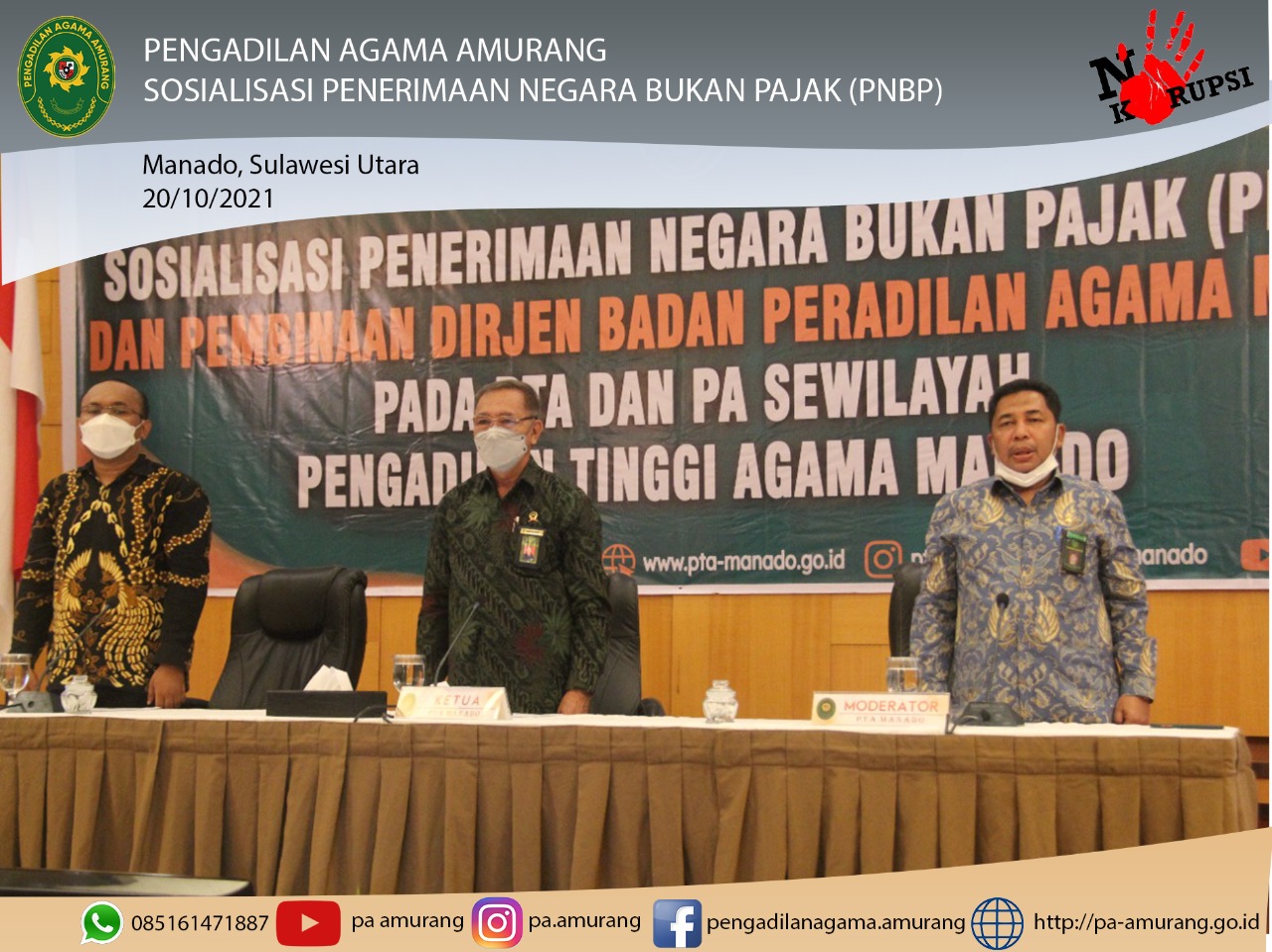 MANADO, Kamis,20 Oktober 2021,Para Pimpinan Pengadilan Agama Amurang yang terdiri dari Ketua,Wakil Ketua,Panitera dan Sekertaris mengikuti kegiatan yang diadakan oleh Pengadilan Tinggi Agama Manado dalam menindaklanjuti Surat Sekertaris Direktorat Jenderal Badan Peradilan Agama,Mahkamah Agung Republik Indonesia Nomor: 2010/DjA.1/OT.01.1/9/2021 tanggal 22 September tentang Revisi Anggaran dalam rangka penggunaan Anggaran PNBP Tahun anggaran 2021.