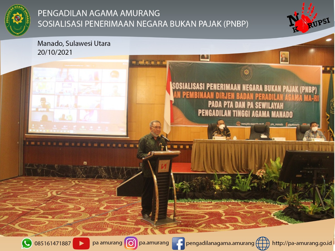 Sosialisasi PNPB Teknis dibawakan oleh Bapak Abdul Halim,Analisis Perbendaharaan Negara,Kantor Wilayah DJPB Sulut,acara tersebut juga diikuti oleh Kepala sub Bagian Umum dan Keuangan dan Bendahara PTA Manado dan PA sewilayah Sulawesi Utara secara daring (zoom).