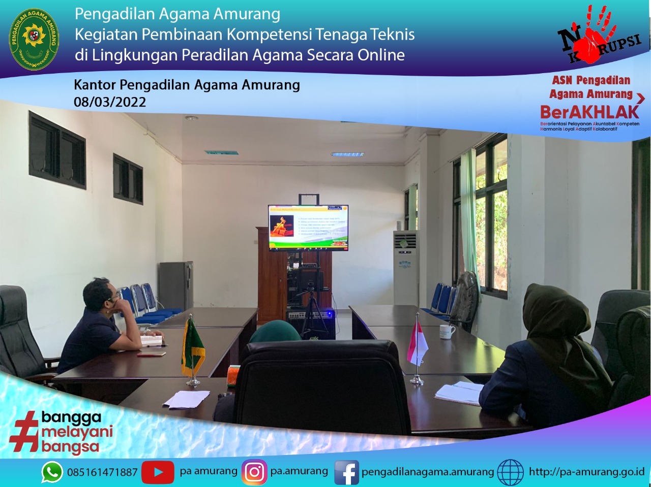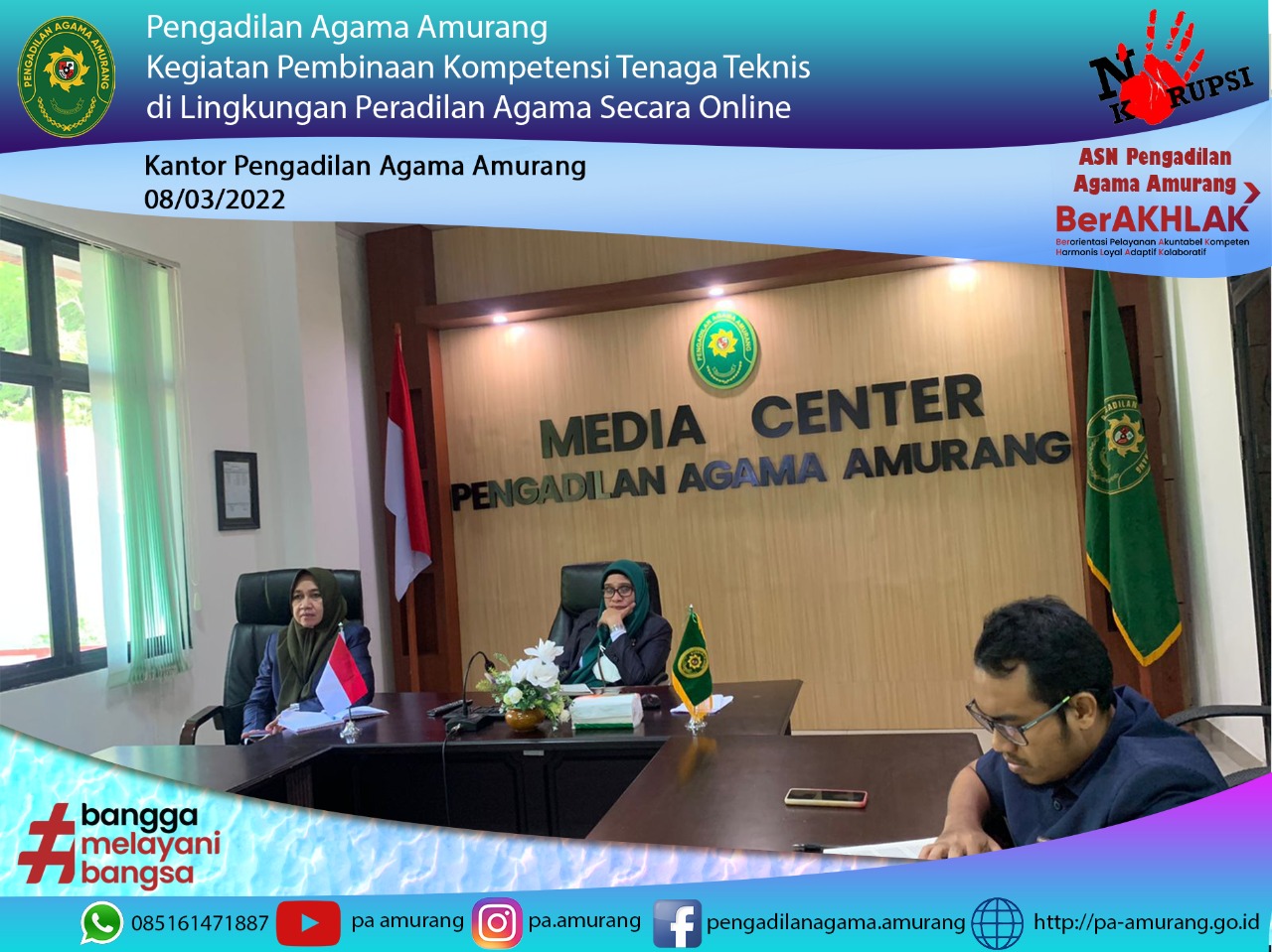 Amurang, Selasa 8 Maret 2022 bertempat di ruang Media Centre Pengadilan agama Amurang, Ketua PA Amurang Ibu Nur Afni Saimima.SH, Wakil Ketua Ibu Masyrifah Abasi, S. Ag, Hakim Bpk Jauharil Ulya, S.Hi, MSc mengikuti Pembinaan Tekhnik Yustisial tentang Problematika Eksekusi di Pengadilan agama yang dibuka secara daring oleh Dr. Drs. H. Aco Nur, S.H., M.H. selaku Direktur Jenderal Badan Peradilan Agama MA RI didampingi Dr. H. Chandra Boy Seroza, S.Ag., M.Ag yang bertindak sebagai moderator dengan nara sumber YM Dr. H. Andi Samsan Nganro S.H., M.H. Wakil Ketua MA RI Bidang Yudisial yang di ikuti oleh seluruh warga peradilan agama khusunya tenaga teknis bagian kepaniteraan.